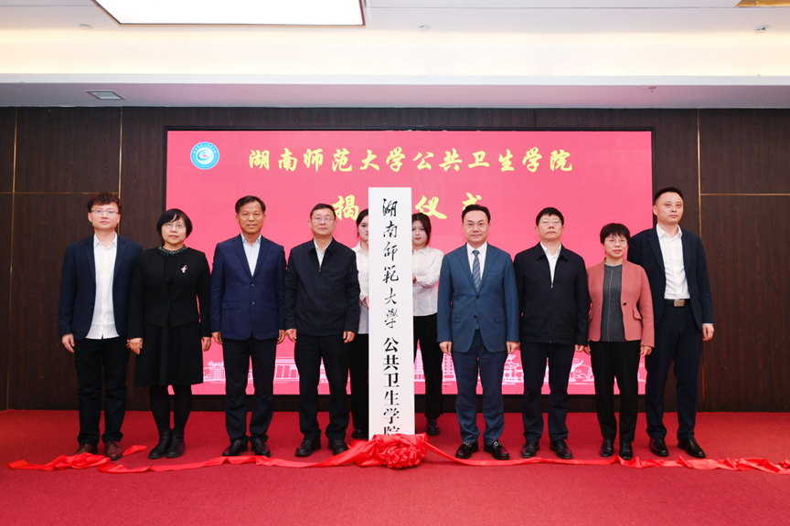 陶学永、刘仲华、祝益民、李孝君等共同为公共卫生学院成立揭牌。