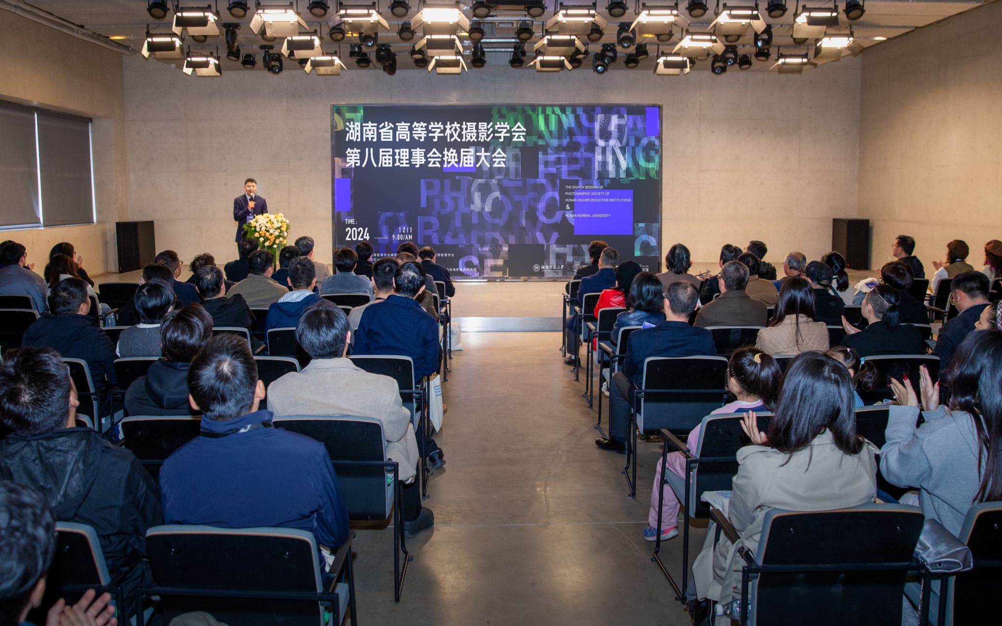 潘安练对大会的召开表示热烈的祝贺,他肯定了学会在学科建设、一流课程开发以及摄影人才培养等方面做出的卓越贡献。他指出,学会要积极探索文化加科技融合发展的路径,以影像科技赋能湖湘文化传承与创新。