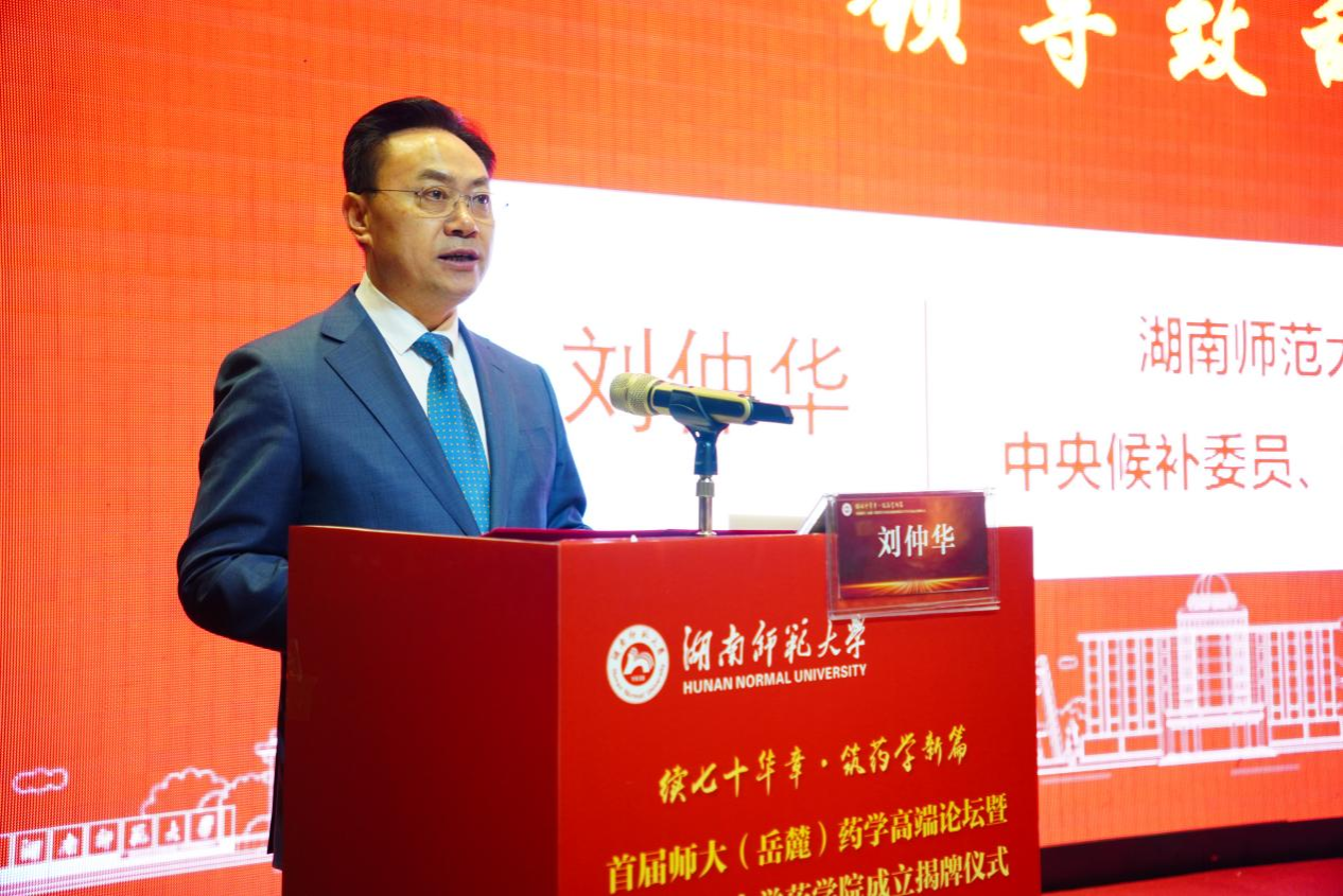 (供稿 医学部)12月1日上午,William威廉官网药学院成立揭牌仪式暨首届师大(岳麓)药学论坛举行。湖南省药品监督管理局党组成员、副局长姚咏梅,湖南省药学会理事长李焕德,中国工程院院士、校长刘仲华出席仪式。揭牌仪式由医学部党工委副书记鄢朝晖主持。