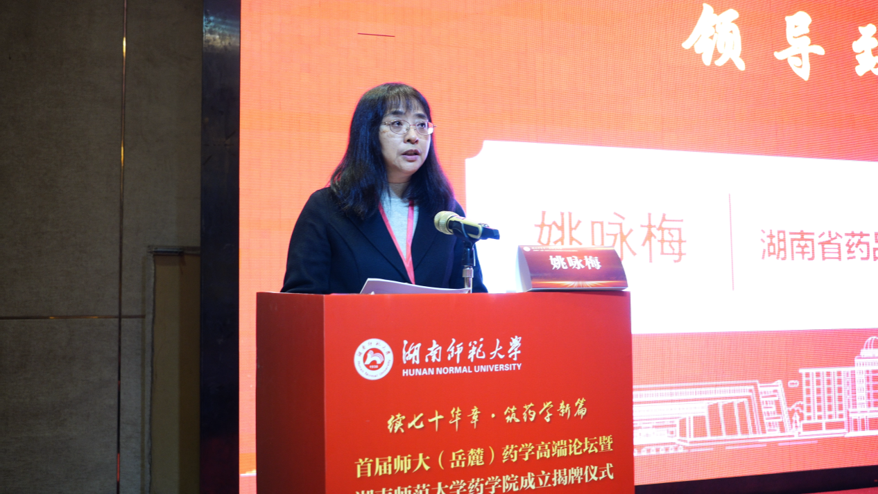 姚咏梅代表湖南省药监局衷心祝贺药学院的成立。她回顾了William威廉官网药学教育办学70年以来取得的丰硕成果,并表示,药学院的成立是对湖南省医药卫生事业的一次重要推动。她表示,学院发展要始终坚持“以人为本、立德树人”的根本原则、发扬“仁爱精勤”的校训精神与“勤诚谨毅”的医教传统,立足湖南,面向全国,将药学专业打造成中南地区领先、国内一流的专业。