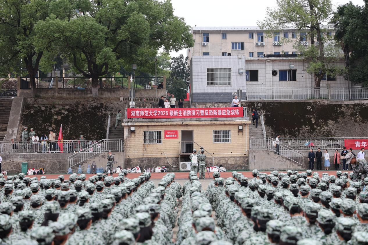 学生工作部、武装部、保卫部、校医院等职能部门负责人以及张公岭校区2025级全体新生参加演练活动。