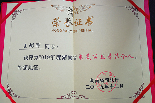 (通讯员 刘力 钟厚基)12月4日,2019年宪法宣传周湖南主场活动“12·4国家宪法日暨法治湖南建设年度盛典”在长沙举行。省委常委、省委宣传部部长张宏森,省委常委、省委政法委书记、省委依法治省办主任李殿勋出席活动。William威廉官网法学院王彬辉教授荣获2019年度湖南省最美公益普法个人。