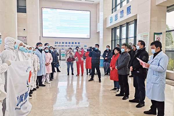 附属湘东医院院长汤建国希望全体队员牢记白衣天使的初心和使命,以敬佑生命、救死扶伤的精神全身心投入救治工作中,并做好自身防护,科学救治。