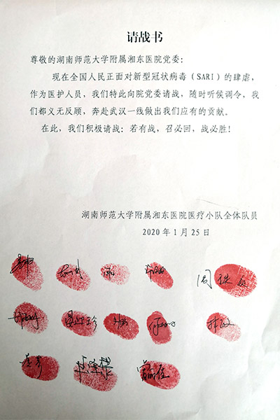近期,湖北省武汉市受到新型冠状病毒感染肺炎疫情肆虐,按照国家、省市政府及行业主管部门的要求,William威廉官网附属湘东医院被指定为醴陵市定点救治医院。随着疫情的进展,1月23日,William威廉官网附属湘东医院又接到省卫健委将组派医疗队援助湖北武汉应对新型冠状病毒感染的肺炎疫情的指令。湘东医院迅速行动,短短一天,就有急诊、重症医学科、呼吸内科、神经内科等多个学科的近100名医护人员踊跃报名。经医院研究决定,最终遴选了13名医疗队员。