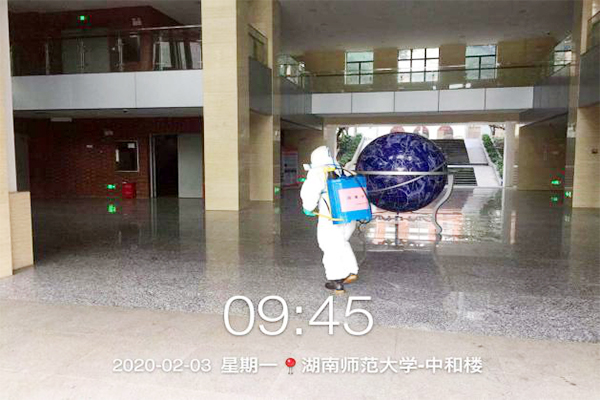 大事难事见担当。面对复杂严峻的防控形势,他们采取多渠道保障防疫物资供应,及时联系公司采购口罩、喷雾器、84消毒液、酒精、测温计等防护、消毒物资,视情提前进行补充。坚持每日消毒制度,消除卫生死角。物业公司的员工每日背负数十斤重的消毒液,穿梭在师大的各个角落,对公共区域进行有针对性的消毒、清洁和杀菌,并对电梯按键、马桶按键、门把手等细节部位逐一进行擦拭消毒,夯实校园的环境卫生基础。为加强疫情防控工作,维护师生生命安全和身体健康,他们全面落实楼栋和住宅区封闭管理。保利天创物业公司师大项目部每天不厌其烦地对木兰楼留校的近百名留学生进行体温测量及酒精消毒,提醒学生佩戴好口罩。珠海丹田物业公司师大项目部严格执行公寓管理的有关规定,每天两次定时汇报公寓当天工作情况,确保无齐全手续的学生一律不得进入公寓楼,遇有突发情况及时上报。在做好校园疫情防控的同时,他们加强员工体温检测和防护,每日组织对员工进行体温测试,对衣物进行消毒处理,做到全体员工健康保护全覆盖。