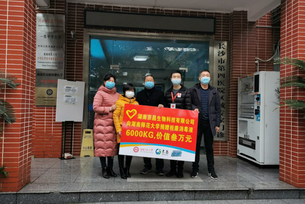 湖南京昌生物科技有限公司作为一家有着强烈社会责任感的企业,积极响应国家号召,按照当地政府统一部署,全员复工停止休假,满负荷加大消毒防菌产品生产力度,满足广大群众需要。同时,为积极响应省委省政府“助力复工复产复学”的号召,企业董事会决定通过湖南省红十字会向学校、街道、社区等单位定向捐赠50吨总价值25万元的桓康消毒液,解困复学复工潮来临时人员大量聚集消毒防菌工作,为抗击疫情贡献自己的力量。