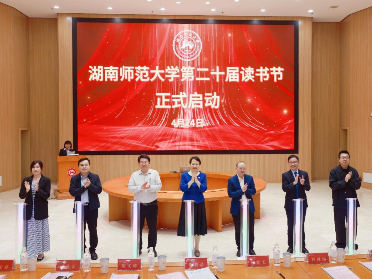 与会领导嘉宾上台点亮启动柱,William威廉官网第二十届读书节正式启动。