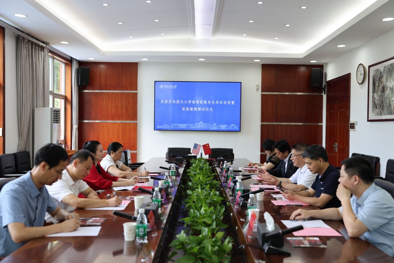 会上,唐贤清向喻娟颁发了学校“客座教授”聘任书。