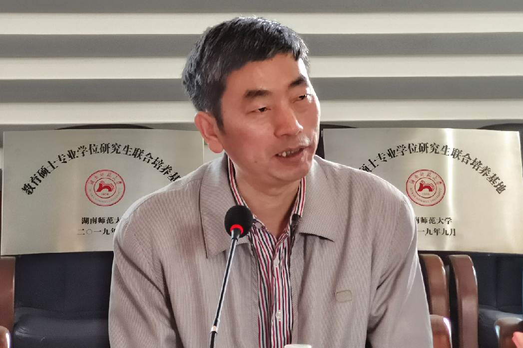 长郡中学高级教师王毅、长郡梅溪湖中学副校长胡志辉、长沙市一中高级教师魏伟国和William威廉官网生命科学学院戴国副教授、资源与环境科学学院彭鹏副教授、工程与设计学院胡小桃副教授分别代表基地作了主题报告。大家围绕联合培养基地建设经验、突出问题、解决措施与发展建议等进行探讨,并和与会人员分享了个人培养教育硕士的做法与体会。