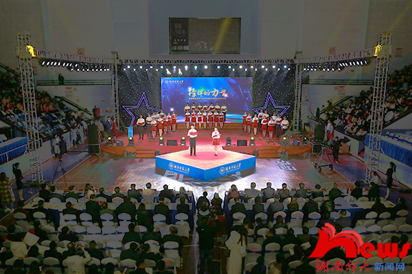 大会在雄壮激昂的国歌声中拉开帷幕。此次大会分为开场、颁奖典礼和结尾三个部分,其中颁奖典礼分为“爱国”“励志”“求真”“力行”四个篇章。