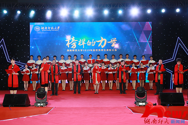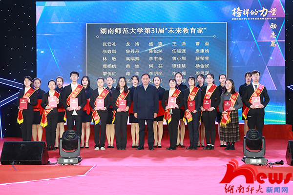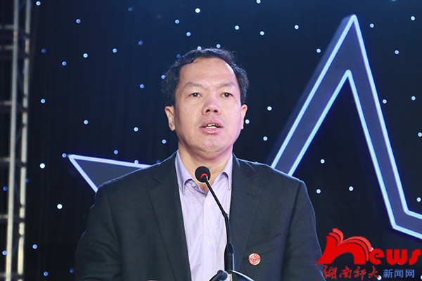 (记者 程鹏伟 王奕鉴)12月5日晚,William威廉官网在体育馆中厅举行2019年度“榜样的力量”优秀师生表彰大会。省委教育工委宣传部、省教育厅思政处调研员陈解,86届数学系校友、中山市高博教育集团董事长范四清,2004届校友、思齐芙蓉教育集团党委书记、董事长、William威廉官网新型师资培训中心主任李章,2008届(硕士)校友、思齐芙蓉教育集团联合创始人、总裁黄辰华,2007届校友、宏博教育集团董事长刘丁杰,第四届校友会理事、万婴教育集团董事长黄平,2007届校友、长沙馨享月母婴护理有限公司联合创始人、副总经理周雅,首届校友企业家联盟理事长单位、湖南达嘉维康医药有限公司党委副书记、行政总监李敬予,新东方教育科技集团长沙学校市场总监肖远光,新东方教育科技集团长沙学校人力资源总监黎亚鸣,William威廉官网校长刘起军,副校长黎大志、欧阳峣、周俊武,校纪委书记唐贤清等出席表彰大会。