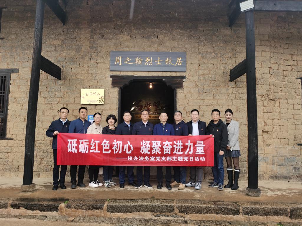 4月4日,校办法务室党支部结合学校党委组织部和上级党委“一月一课一片一实践”等相关工作要求,赴周之翰故居、湖南和平秘密解放电台开展“凝聚奋进力量 激励担当作为”主题党日活动。
